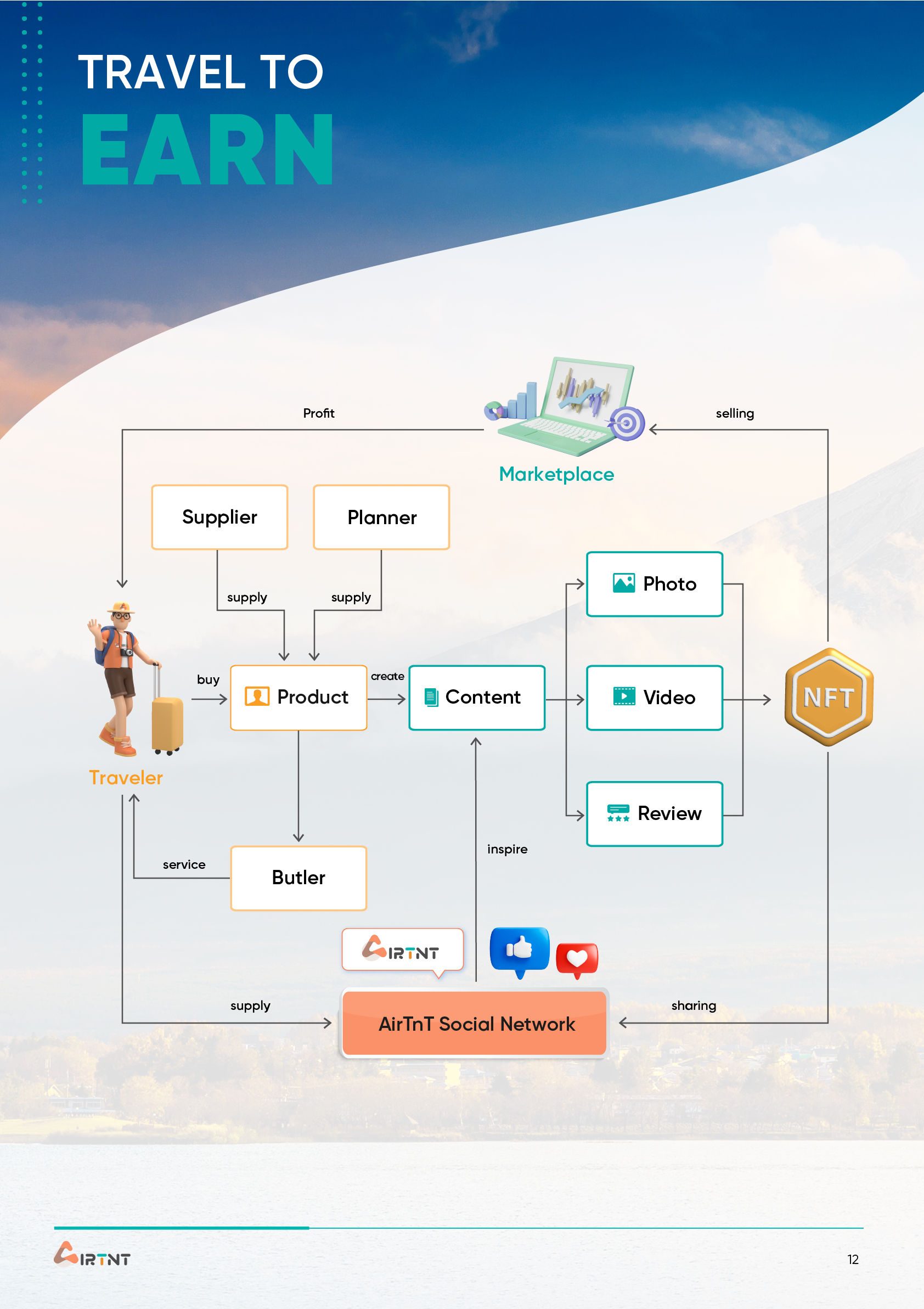 * *Through **AirTnT**'s social network, users can share their beautiful travel photos and pack them into NFT for sale on our Marketplace to collectors.*